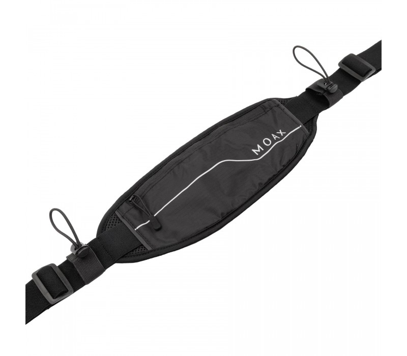 Удобная сумочка на пояс Moax Waist Run вмещает все необходимое для тренировки. Внутренний кармашек на молнии позволяет убрать ключи, деньги или банковскую карту. Основной карман легко вмещает смарфон. Поясной ремень регулируется по объему талии. Дополнительно можно закрепить гели снаружи. Резинки для крепления номера.
