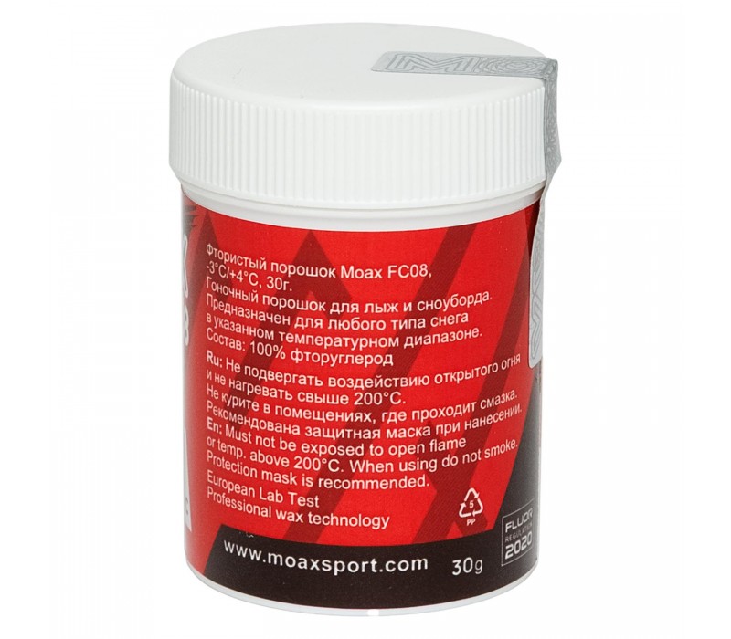 Фтористый порошок Moax FC08, -3°С/+4°С, 30г. Гоночный порошок для лыж и сноуборда. Предназначен для любого типа снега в указанном температурном диапазоне.
