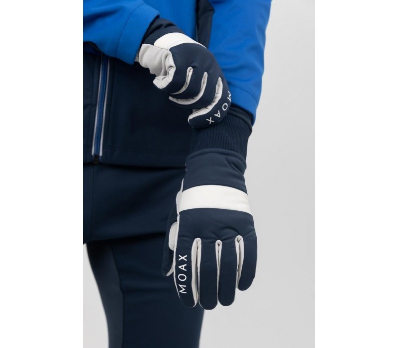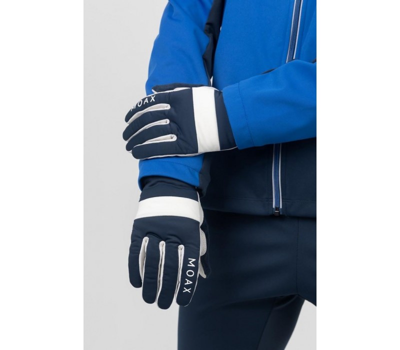 Теплые и комфортные перчатки MOAX Cross для беговых лыж и занятий спортом на свежем воздухе. Эластичный тянущийся материал на тыльной стороне руки и износостойкая синтетическая кожа на ладонях и между пальцами. Перчатки дополнительно утеплены PrimaLoft® и полноценной подкладкой с начёсом. Вязаная манжета хорошо облегает запястье, махровая вставка на большом пальце. Указательный палец с зоной тач-скрина. Подходят для беговых лыж, биатлона, бега, велотренировок и повседневного использования.