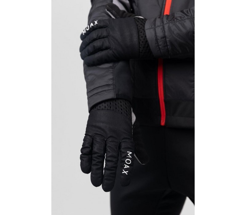 Теплые технологичные гоночные перчатки Moax Race Warm. Воздушная сетка Schoeller® обеспечивает прекрасную терморегуляцию. Сетчатая структура материала предназначена для амортизации и вентиляции под темляком. Перчатки регулируют теплоотдачу, не позволяя рукам потеть. Многослойные перчатки из ветрозащитной ткани с полноценной подкладкой и утеплителем PrimaLoft® на тыльной стороне ладони идеально подходят для интенсивных тренировок и соревнований в холодную погоду. Прочная синтетическая кожаная ладонь с силиконовым напылением. Дополнительная стропа усиливает манжету и облегчает надевание перчатки. Подходят для беговых лыж, биатлона, бега, велотренировок и повседневного использования. Утеплитель 60 г/м². Температура комфорта - 5°С – 15°С.