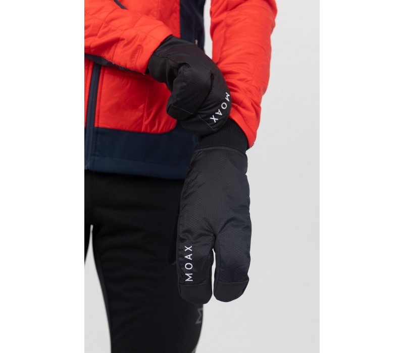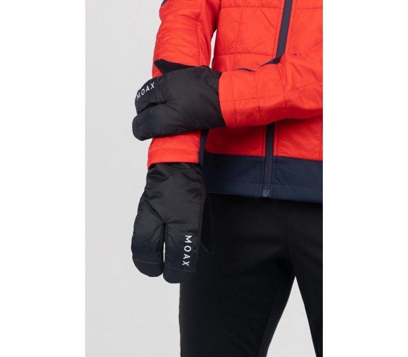 Универсальные теплые варежки-лобстеры Moax Sport Split для беговых лыж и занятий спортом на свежем воздухе. Утепленная модель с водоотталкивающей пропиткой и ладонью из искусственной кожи. Варежки дополнительно утеплены PrimaLoft® и полноценной подкладкой с начёсом. Вязаная манжета хорошо облегает запястье, махровая вставка на большом пальце. Отличная альтернатива перчаткам в холодные дни. Подходят для беговых лыж, бега, велотренировок и повседневного использования. Утеплитель 200 г/м² тыльная сторона, 60 г/м² ладонь. Температура комфорта -10°С – 25°С.